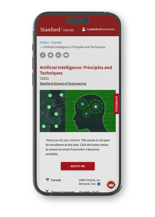 Stanford Online offers a large catalog of online courses across engineering, computer science, and science disciplines. Previously, the course portfolio relied heavily on stock photography, resulting in visual inconsistency and a lack of distinction from other online learning platforms.
